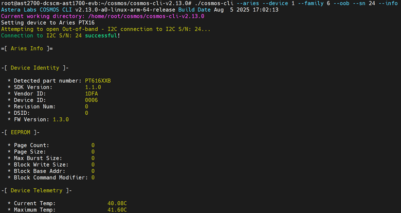Quickly retrieve device information, link health, port telemetry, and firmware logs using repetitive commands that integrate seamlessly into automation pipelines. - Accelerated validation and system reliability