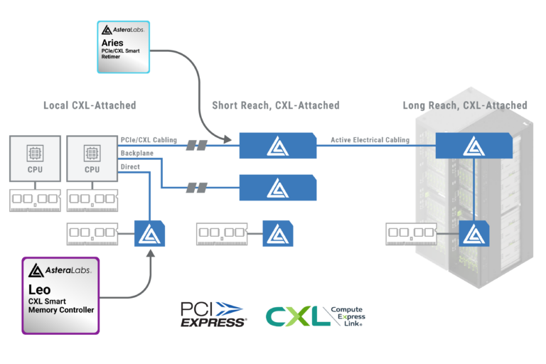 - Supports reliable PCIe 5.x/CXL 2.0 reach extension up to 7 meters to enable larger disaggregated CXL memory infrastructure in a multi-rack architecture.
